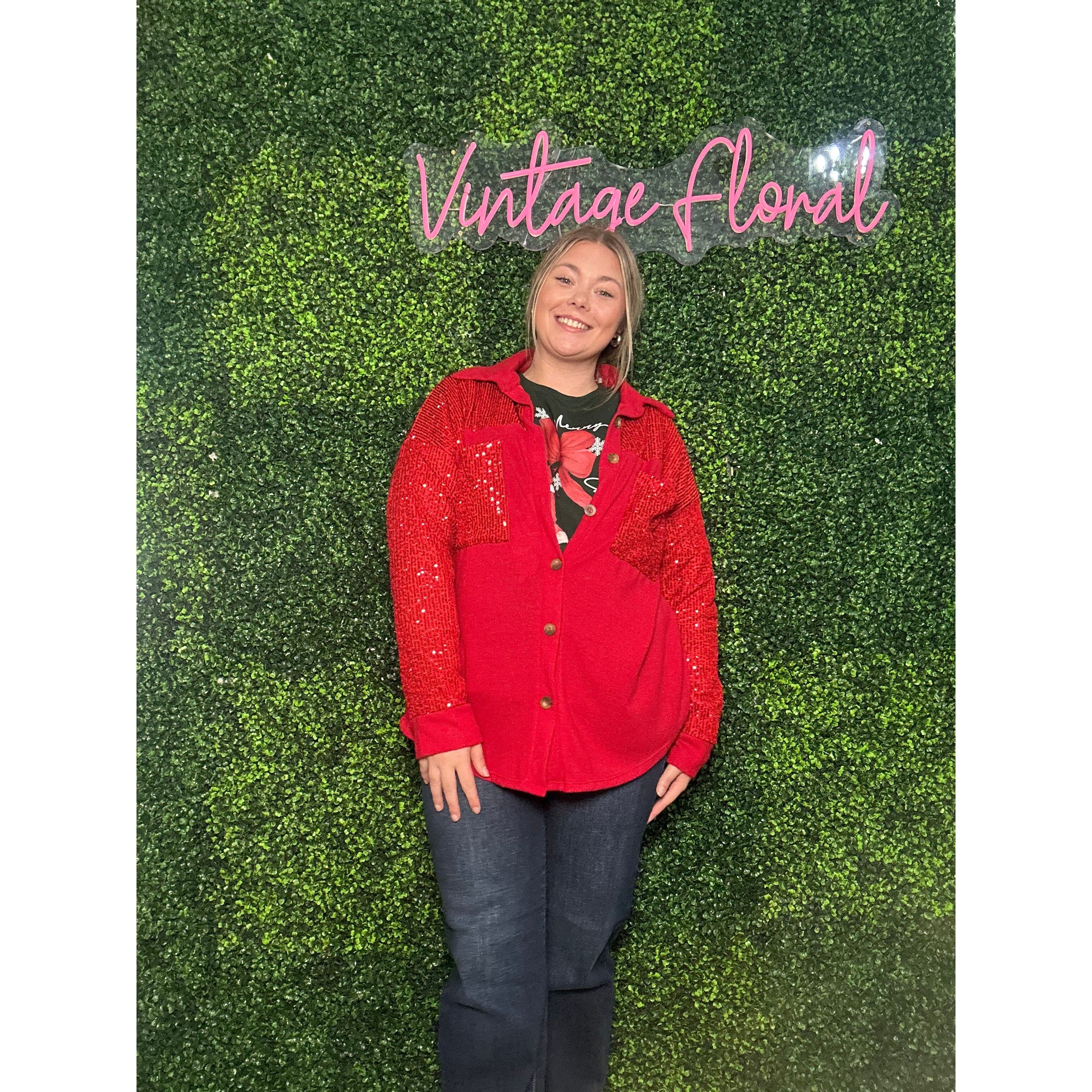 Make a statement at your next party with our Life of the Party Sequins Top. This button-up shacket combines the glamour of red sequins with the comfort of cotton, making it the perfect holiday piece. Dare to be bold and shine all night long.