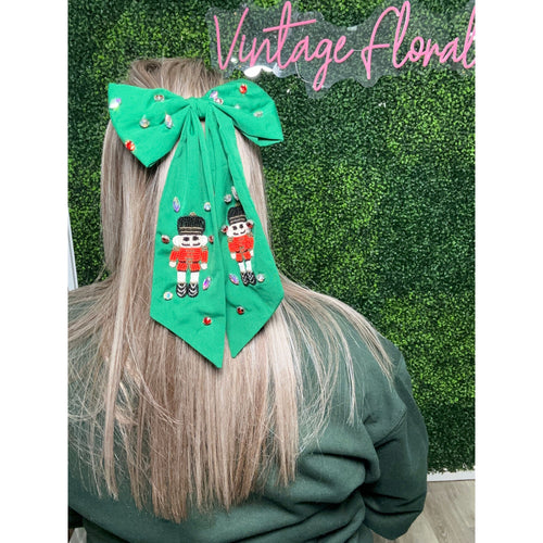 Nutcracker Beaded Bow Barrette Hair Clip : Green