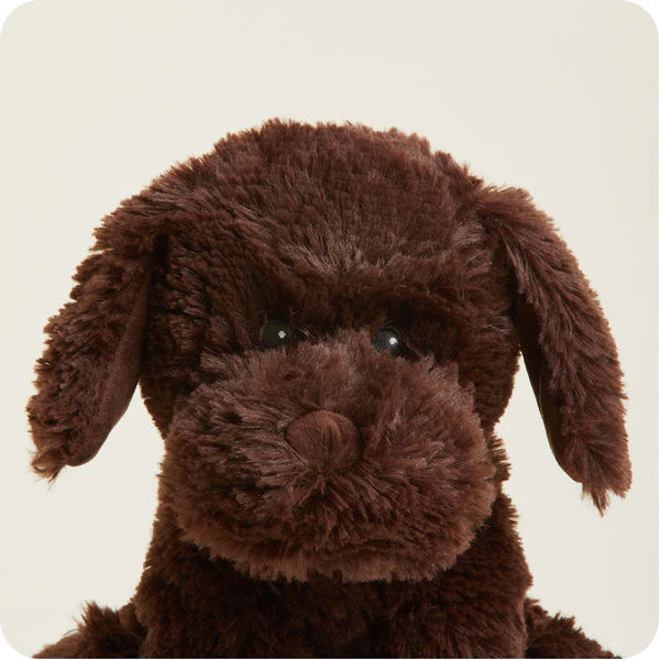Fetch warmth and cozy comfort with Chocolate Lab Warmies. Sitting sweetly, this lovable pup warms in the microwave, carries the calming scent of lavender and is gently weighted to ease stress.