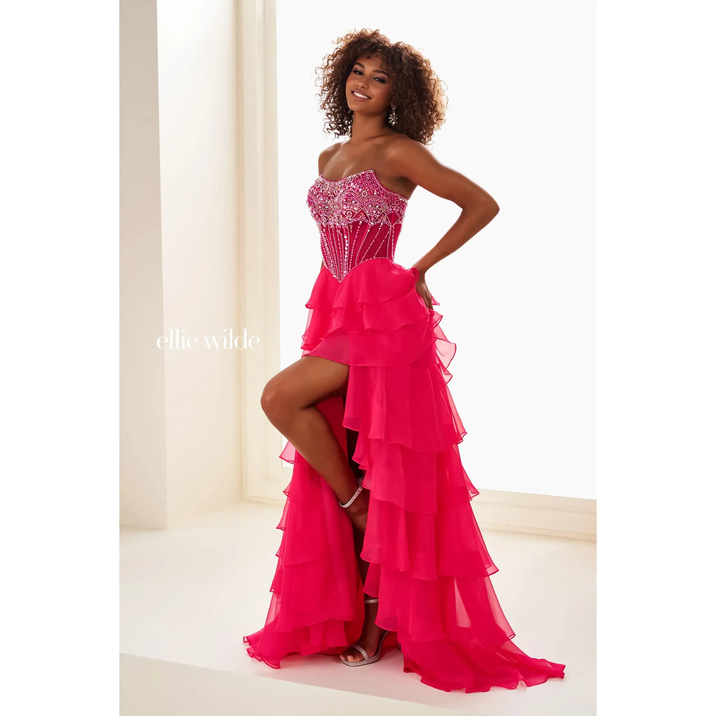 ELLIE WILDE MAGENTA LAYERED DRESS SEQUINS TOP - EW37057