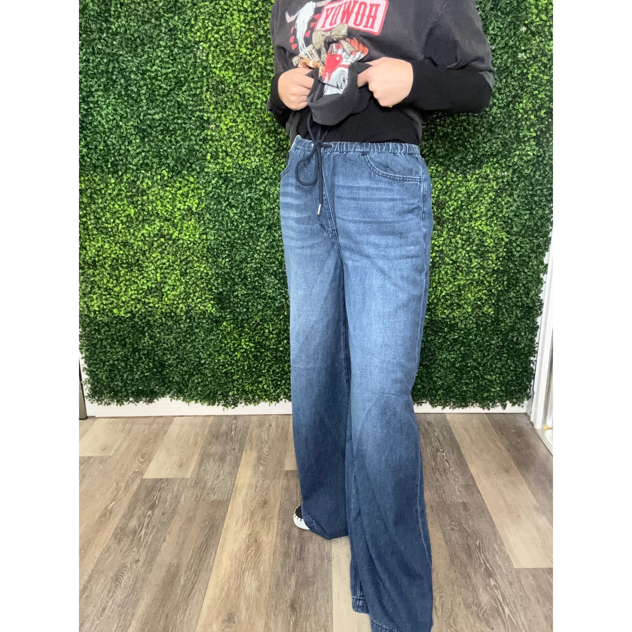 Step into effortless elegance with these Judy Blue high-waist palazzo pants! Crafted from featherweight denim, they're the perfect blend of comfort and style. The dark wash pairs with everything, while the flattering high-waist cut and flowing wide-leg silhouette create a chic, elongated look. Whether you're dressing up for a night out or keeping it casual, these versatile pants are about to become your new favorite go-to. Comfort meets sophistication!