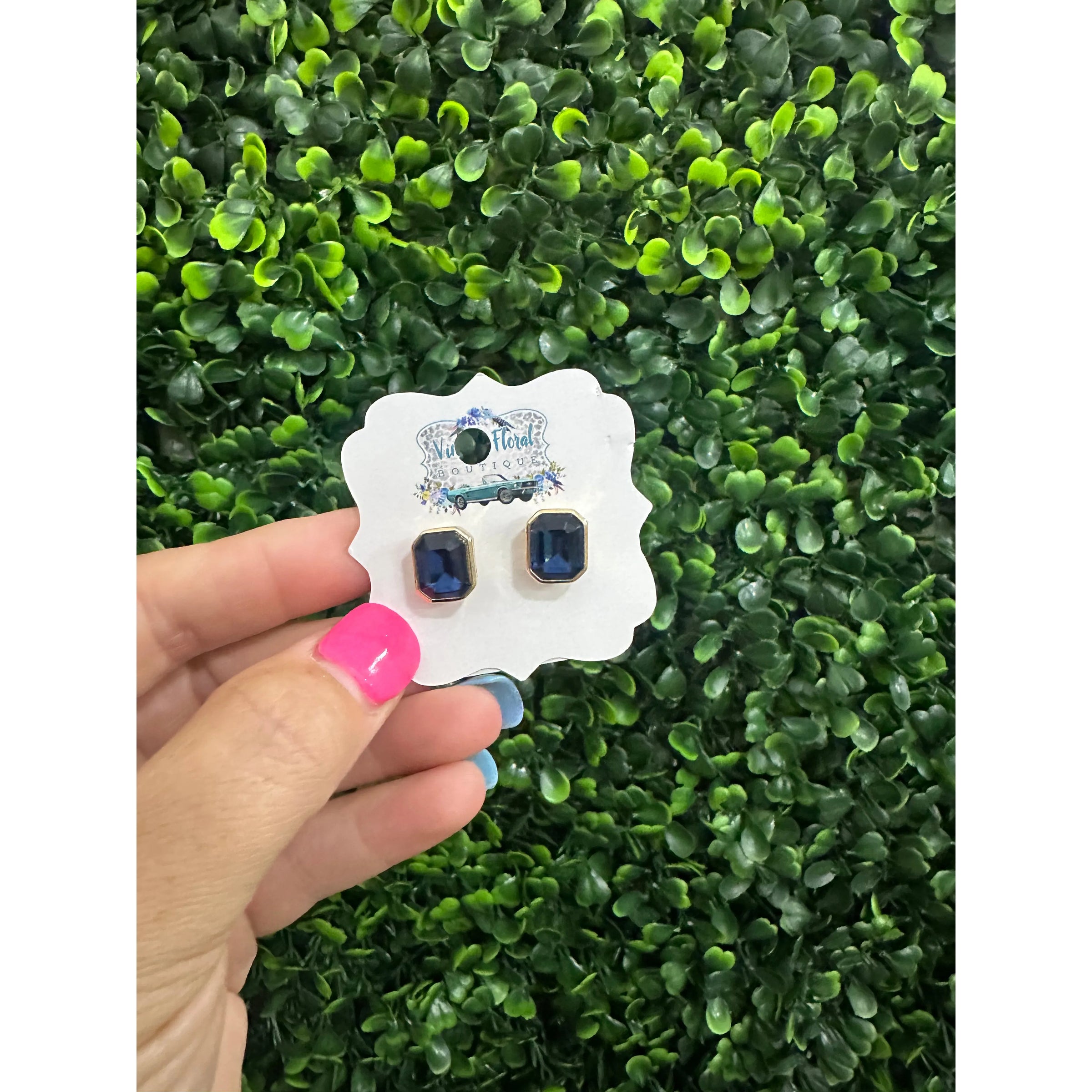 Make a bold statement with these playful Octagon Navy Stud Earrings. Their unique geometric shape and deep navy color add a fun pop of sophistication, perfect for brightening up any outfit with a touch of charm.