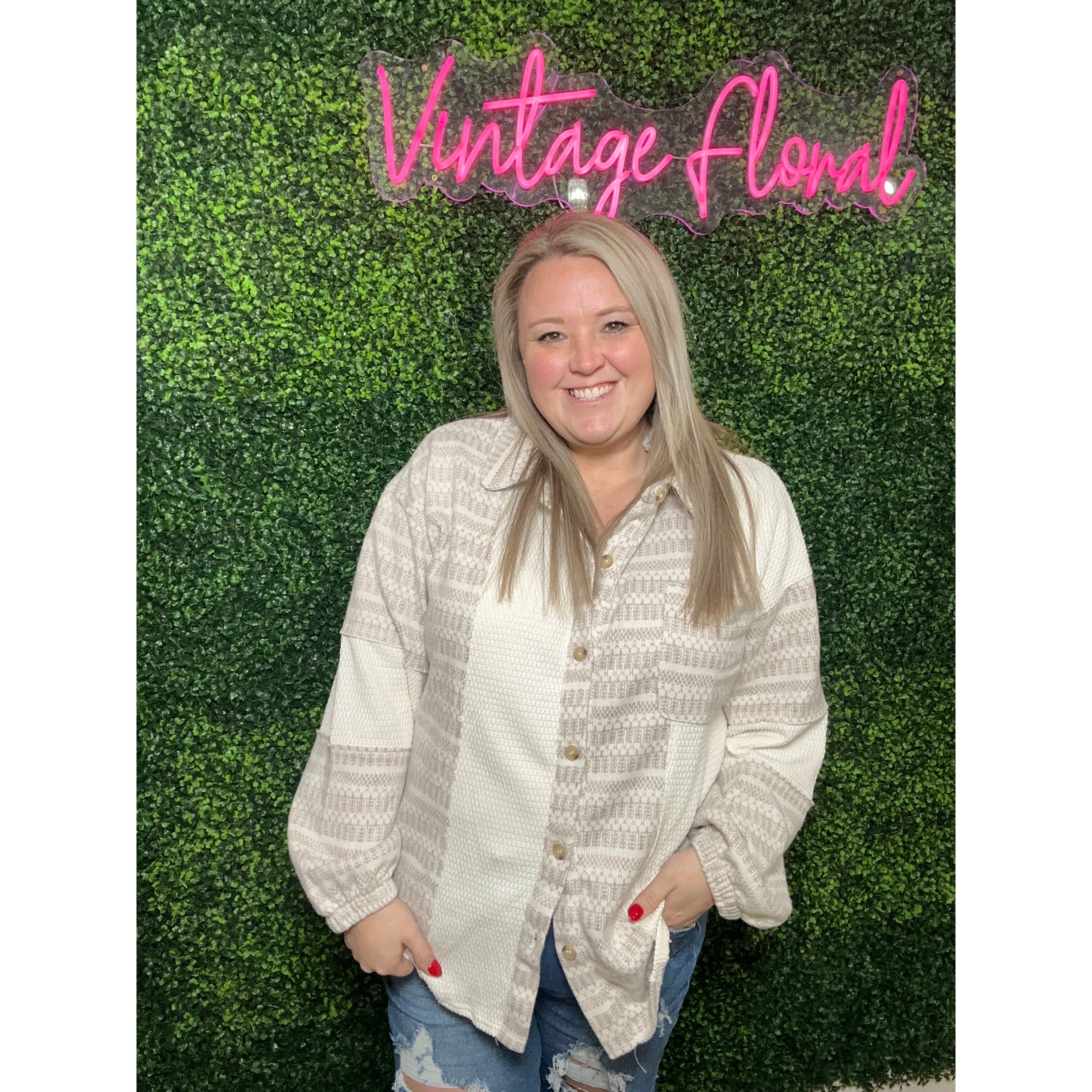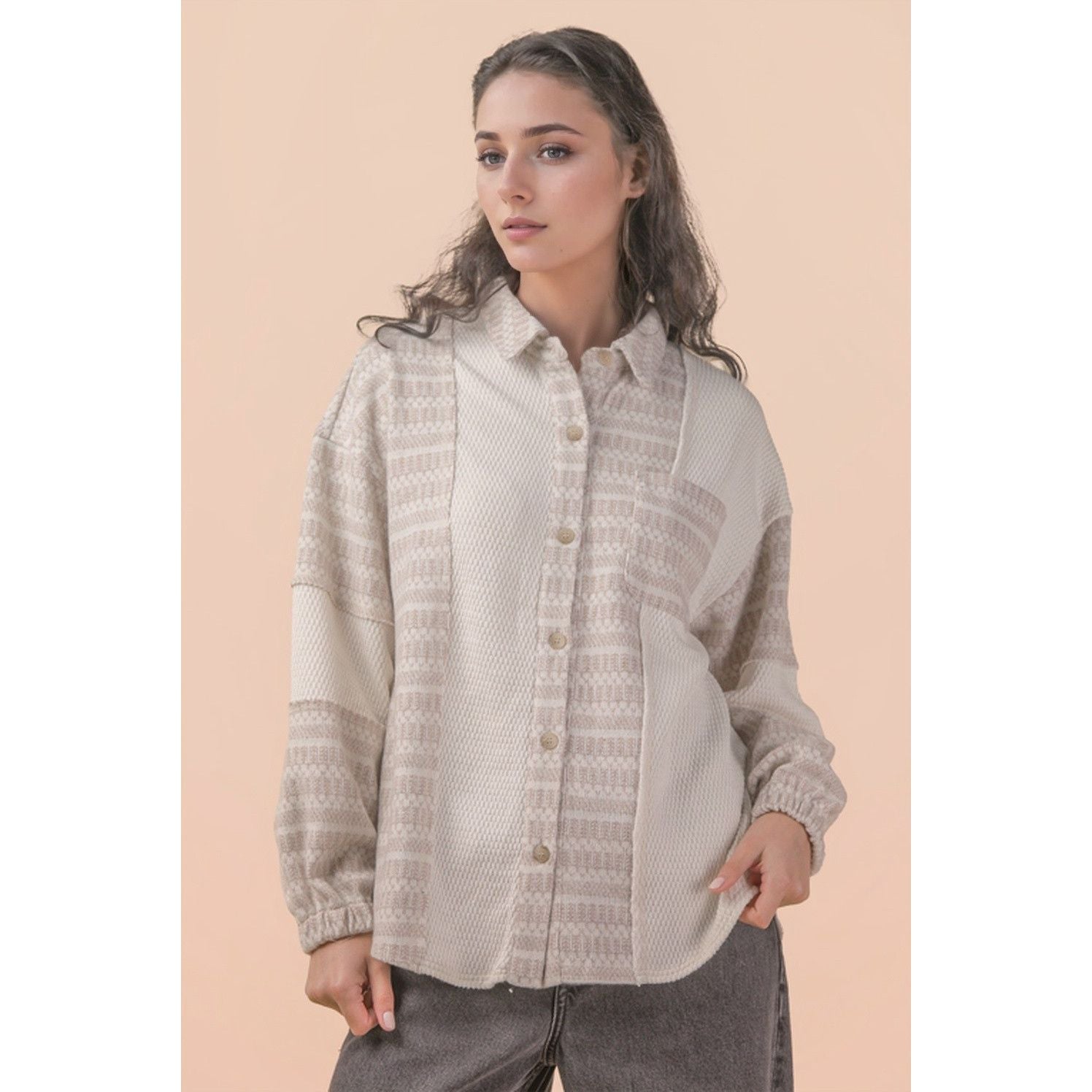 Layer up in cozy style with this oversized mixed knit shacket that's basically a hug you can wear! Crafted in a dreamy cream tone, it blends the comfort of a soft knit with the structured vibe of a classic shirt jacket. Perfect for throwing over your favorite tee or dress, this versatile piece transitions seamlessly from casual coffee runs to relaxed weekend hangouts. The relaxed fit means maximum comfort without sacrificing that effortlessly put-together look.