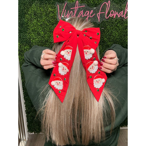 Christmas Santa : Red : Beaded Bow Barrette Hair Clip
