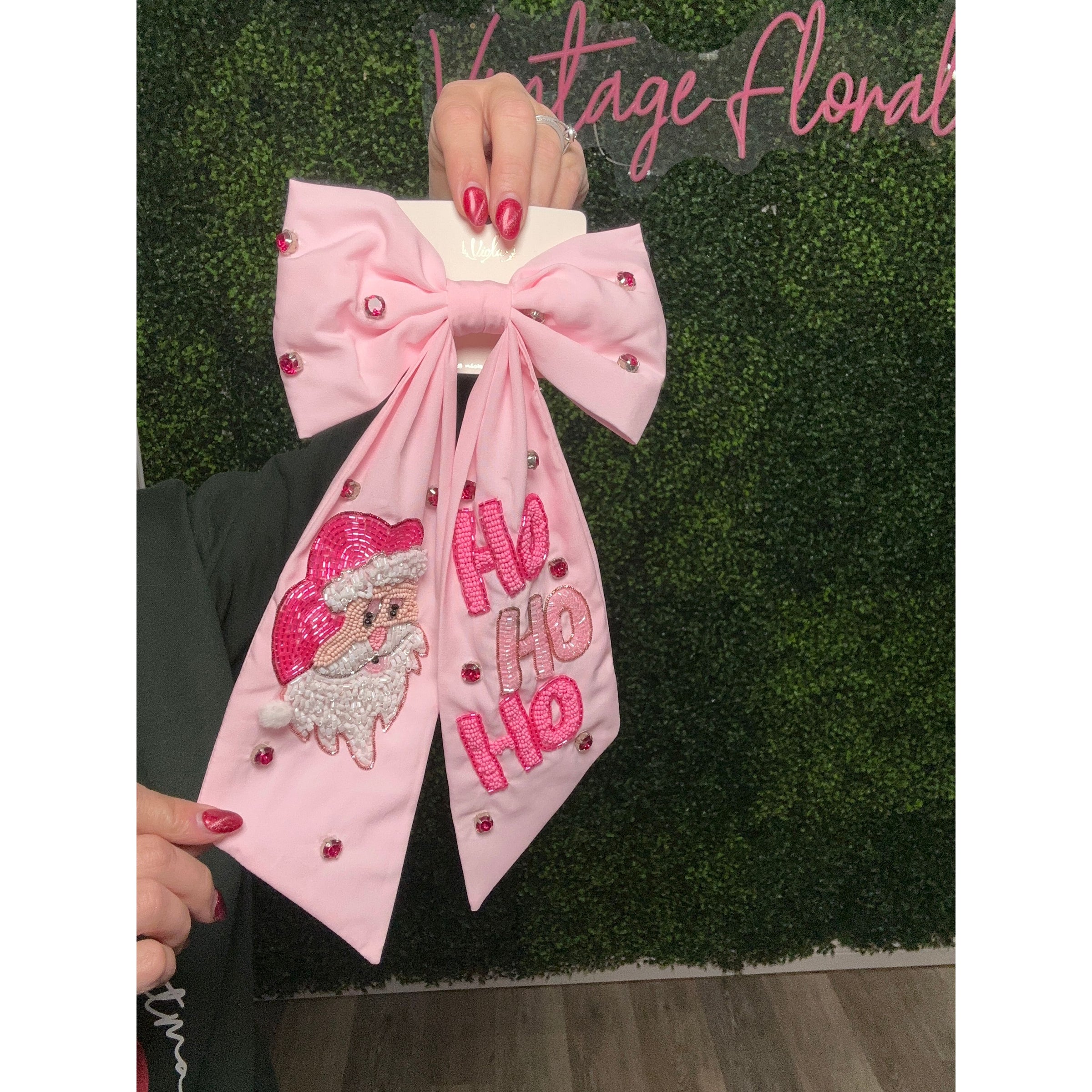 Get ready to sleigh the holiday season with this whimsical pink beaded bow barrette! Featuring a cheerful Santa design paired with playful "HO HO HO" lettering, this accessory brings a fun twist to festive hair styling. The delicate beadwork adds sparkle and dimension, while the reliable clip keeps everything secure all day long. Perfect for holiday parties, family gatherings, or anyone who loves spreading Christmas joy with a girly, lighthearted touch. Your hair deserves some seasonal sass!