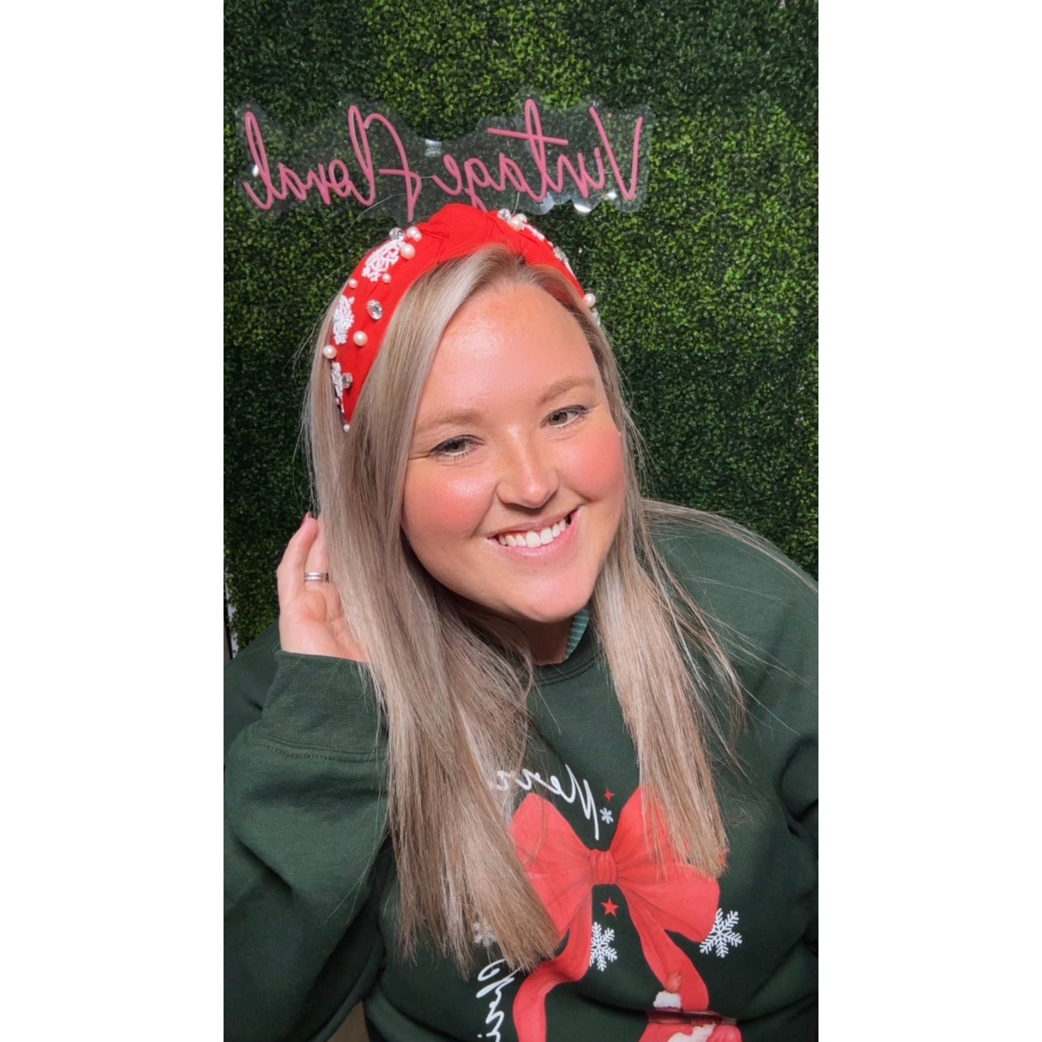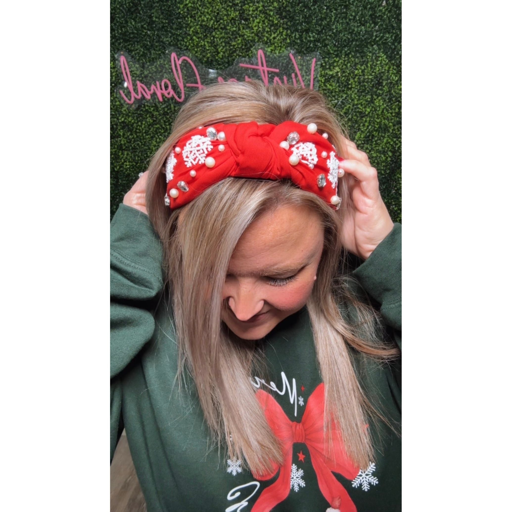Add a festive pop to your winter look with this charming red knotted headband, adorned with delicate white snowflake beading. The playful design brings holiday spirit to any outfit, while the secure knot keeps everything in place throughout your day. Perfect for seasonal celebrations, cozy gatherings, or whenever you want to embrace the magic of the season with style and flair.