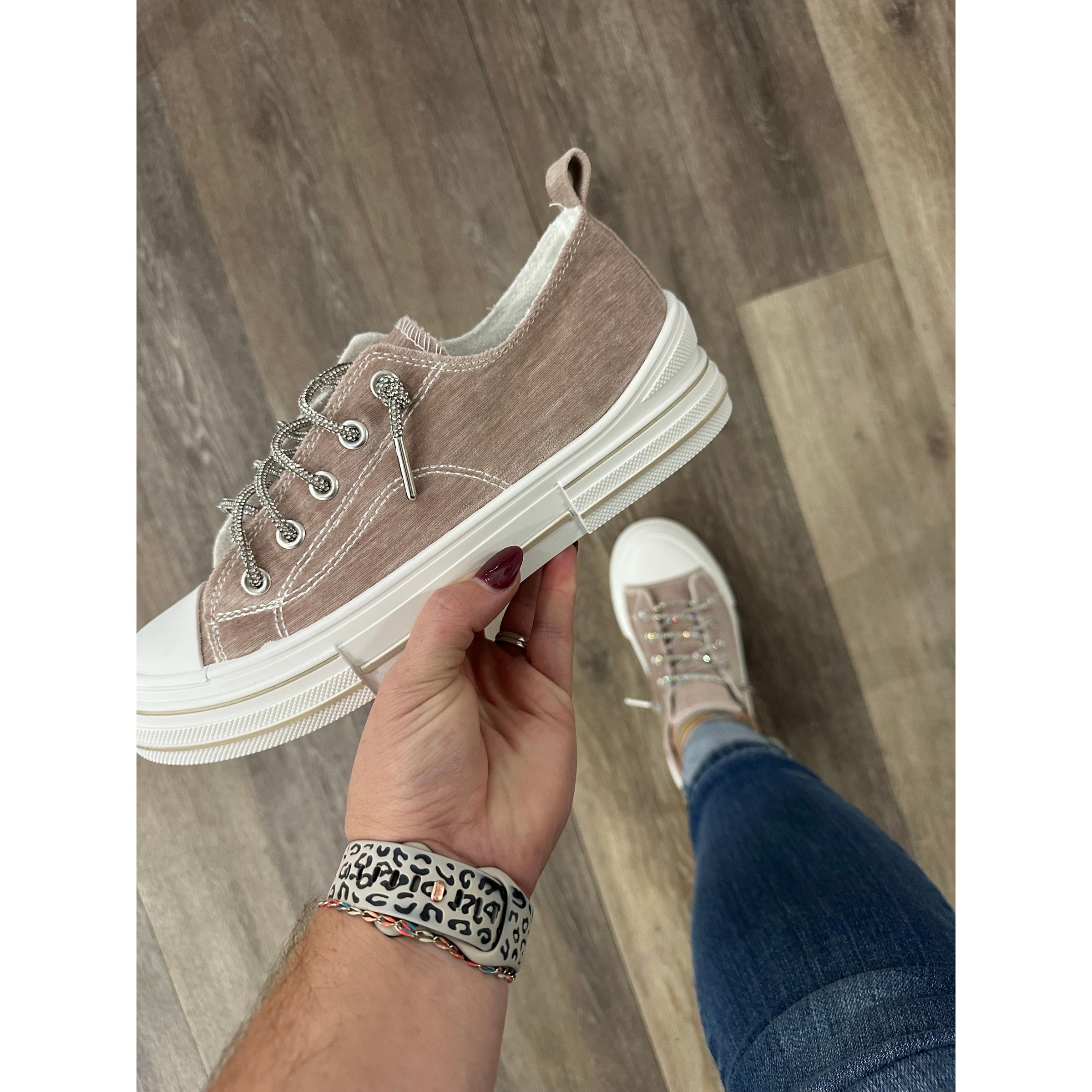 Keep it casual yet chic — the ultimate blend of comfort and cool-girl style. Designed in a neutral nude tone with a soft, velvet finish, these sneakers are the versatile pair your closet has been waiting for. The chunky platform sole gives you a boost in height while staying lightweight and walk-all-day comfortable.