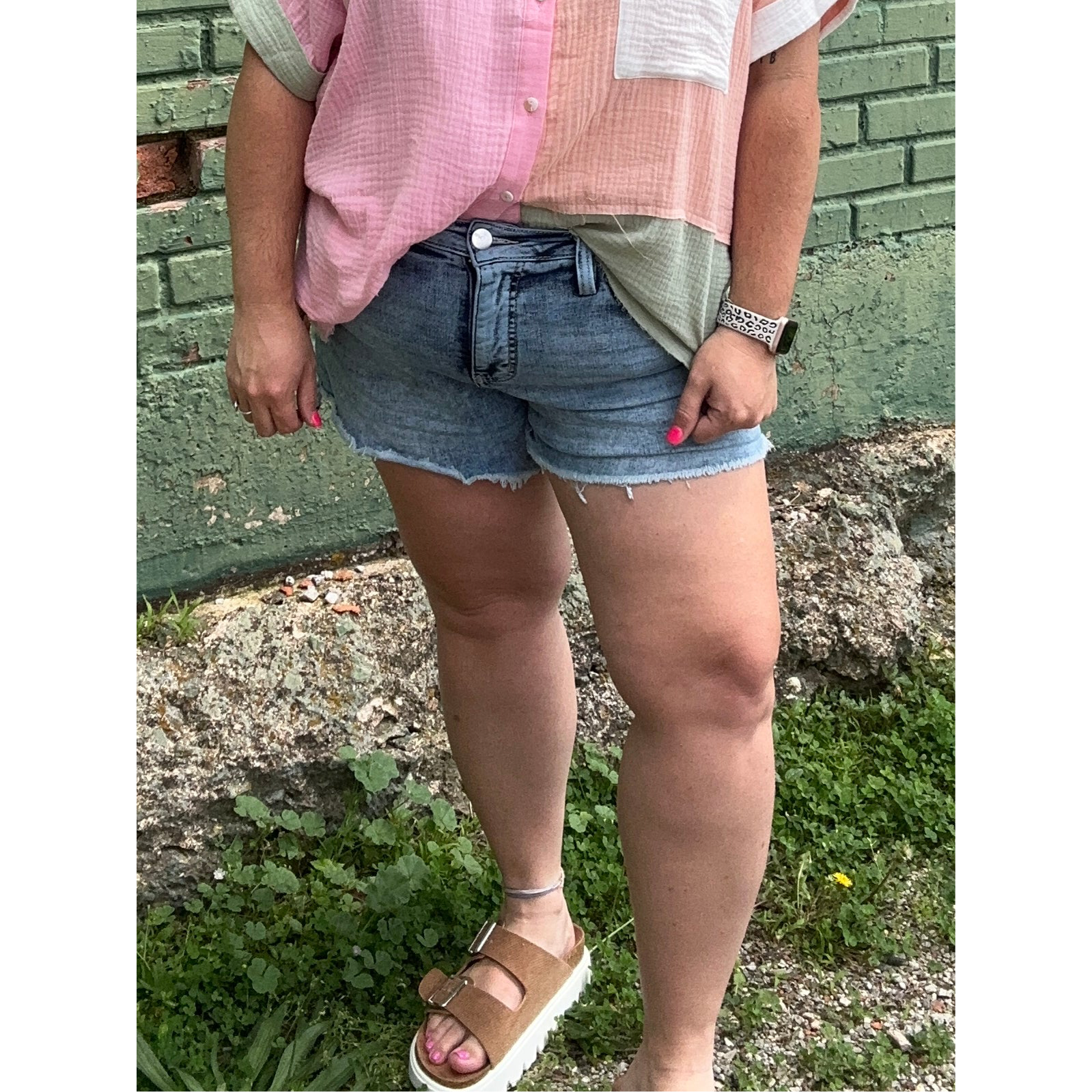 The High Rise Step Fray Hem Long Shorts are a closet essential. With a flattering high-rise fit and built-in tummy control panels, they sculpt a smooth, slimming silhouette that highlights your natural curves. The step fray detail adds a trendy high-low look, while the frayed hem delivers a relaxed, casual vibe. The 1-button closure and zipper provide a secure, comfortable fit, and the premium stretchy fabric ensures all-day comfort and shape retention, moving with you effortlessly. Versatile and easy to style, these shorts are the perfect choice for any season.