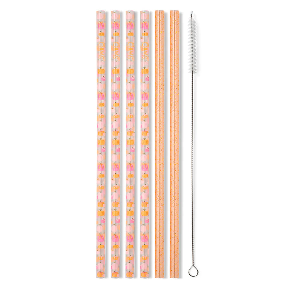 Now you can eliminate the need for those single-use straws and sip from our reusable straws! This bulk straw pack includes 6 BPA-free, plastic straws, and 1 cleaning brush. They are a perfect fit for our Swig 20oz, 22oz and 32oz tumblers or any cup of comparable size you may already own. Recommended for cold and room temperature beverages only.