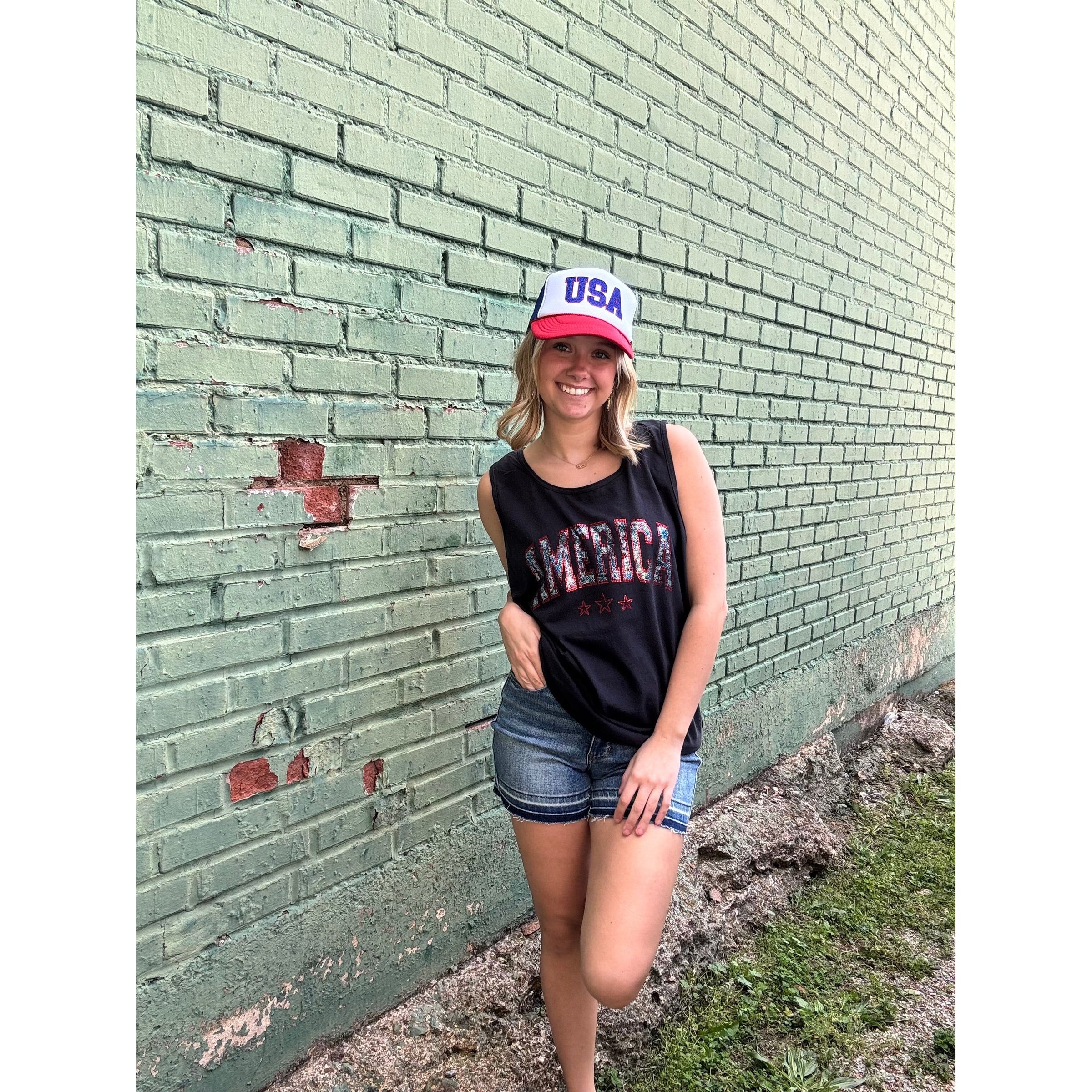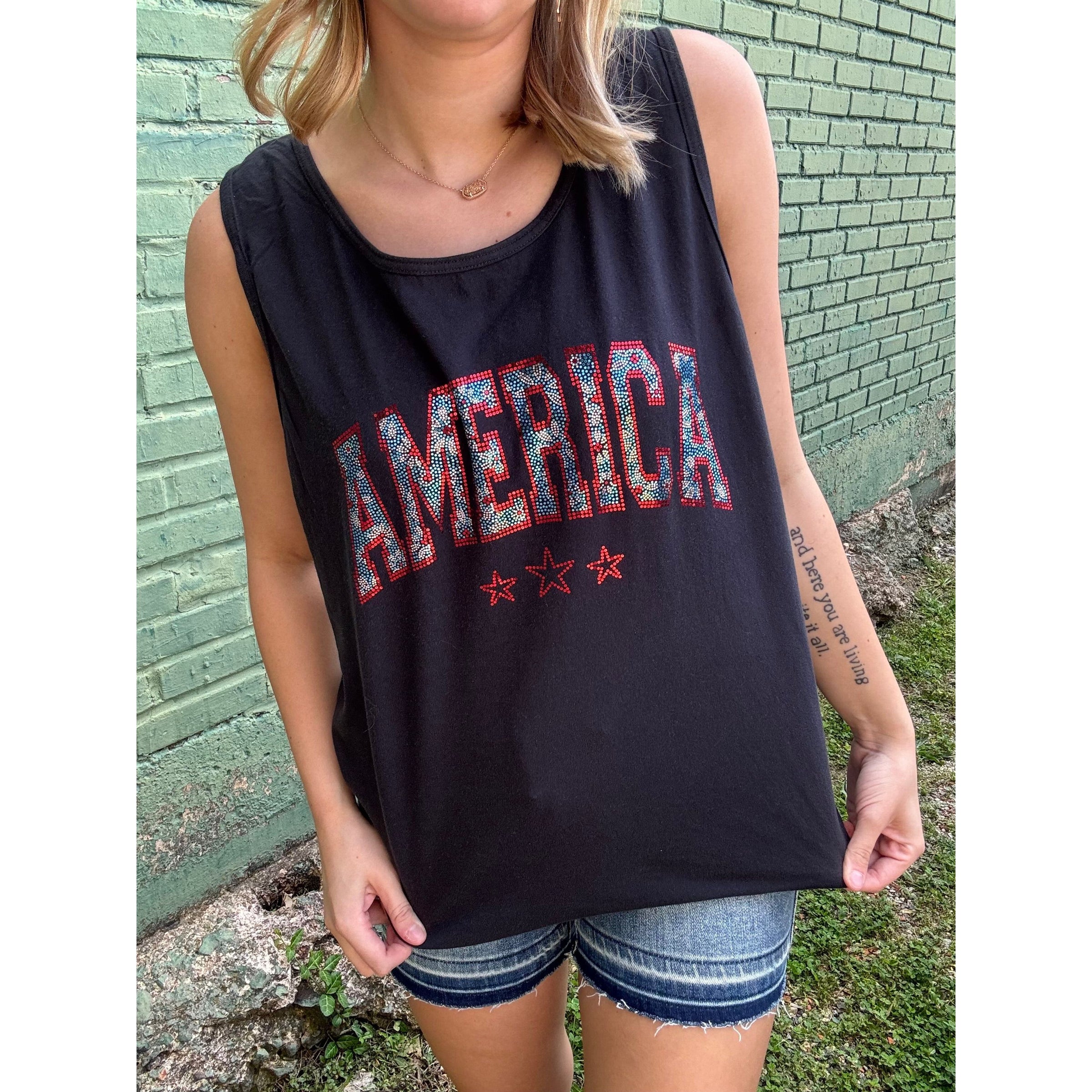 Show your patriotic spirit in this Black Comfort Color Tank featuring a dazzling Spangle Red, White, and Blue America Design. The perfect blend of style and comfort, this true-to-size tank lets you celebrate your love for the USA with a playful pop of color. Ideal for summer barbecues, fireworks nights, or just adding some star-spangled fun to your everyday wardrobe!