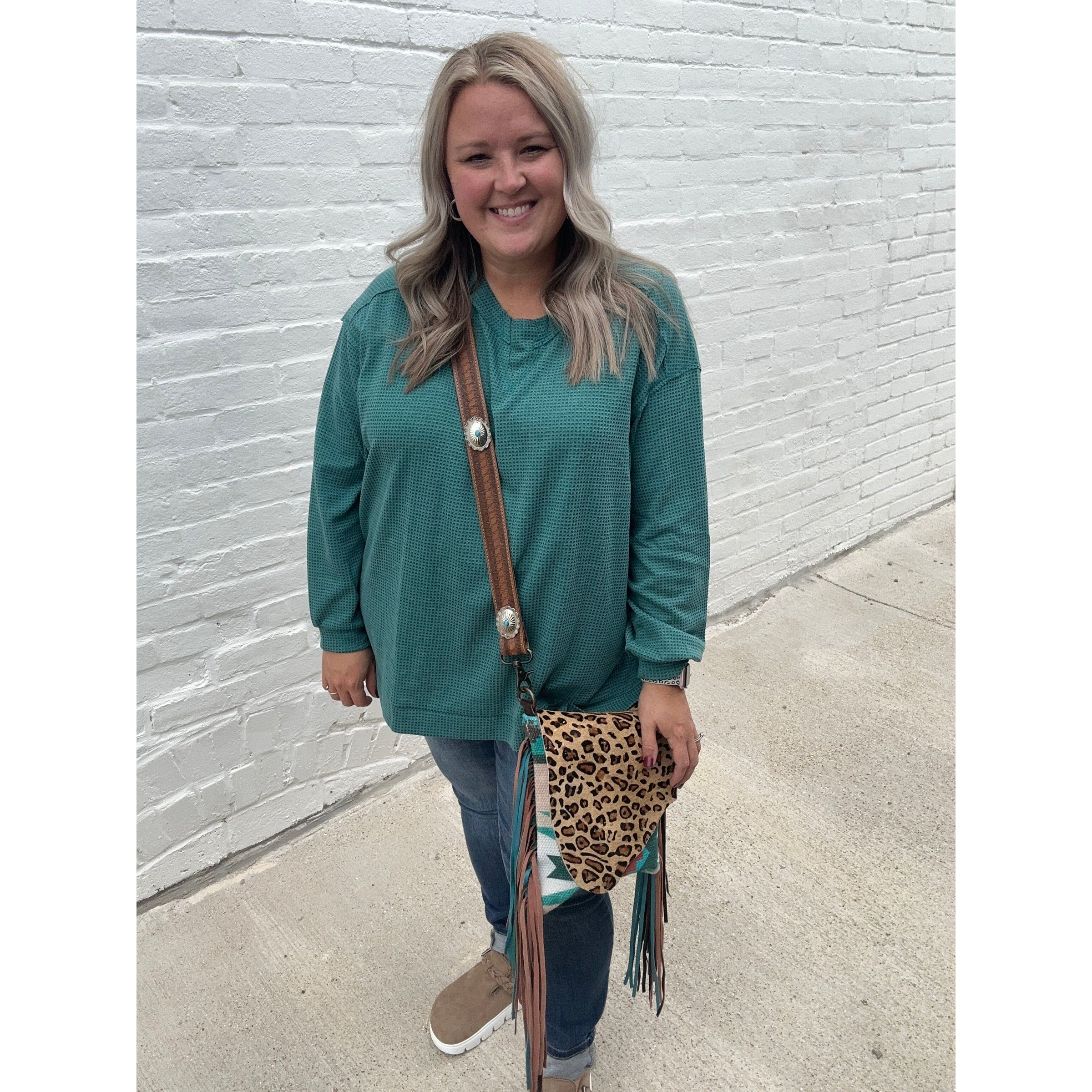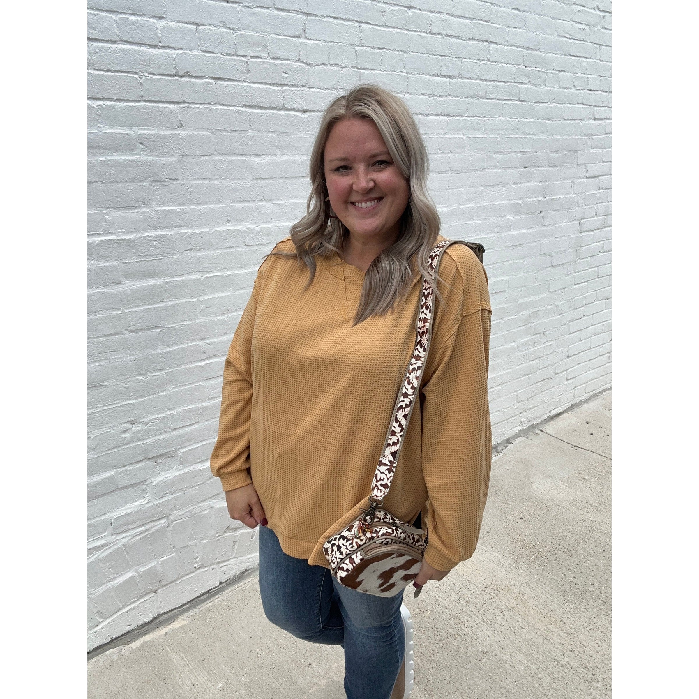 This two tone thermal top features a stylish and comfortable design that's perfect for cooler days. Crafted from a soft fabric, the sleeves and the hemline are banded to add a trendy touch to it. This tunic top also features a fun tag on the back that adds a playful element to it! Knit, non sheer, stretchy.