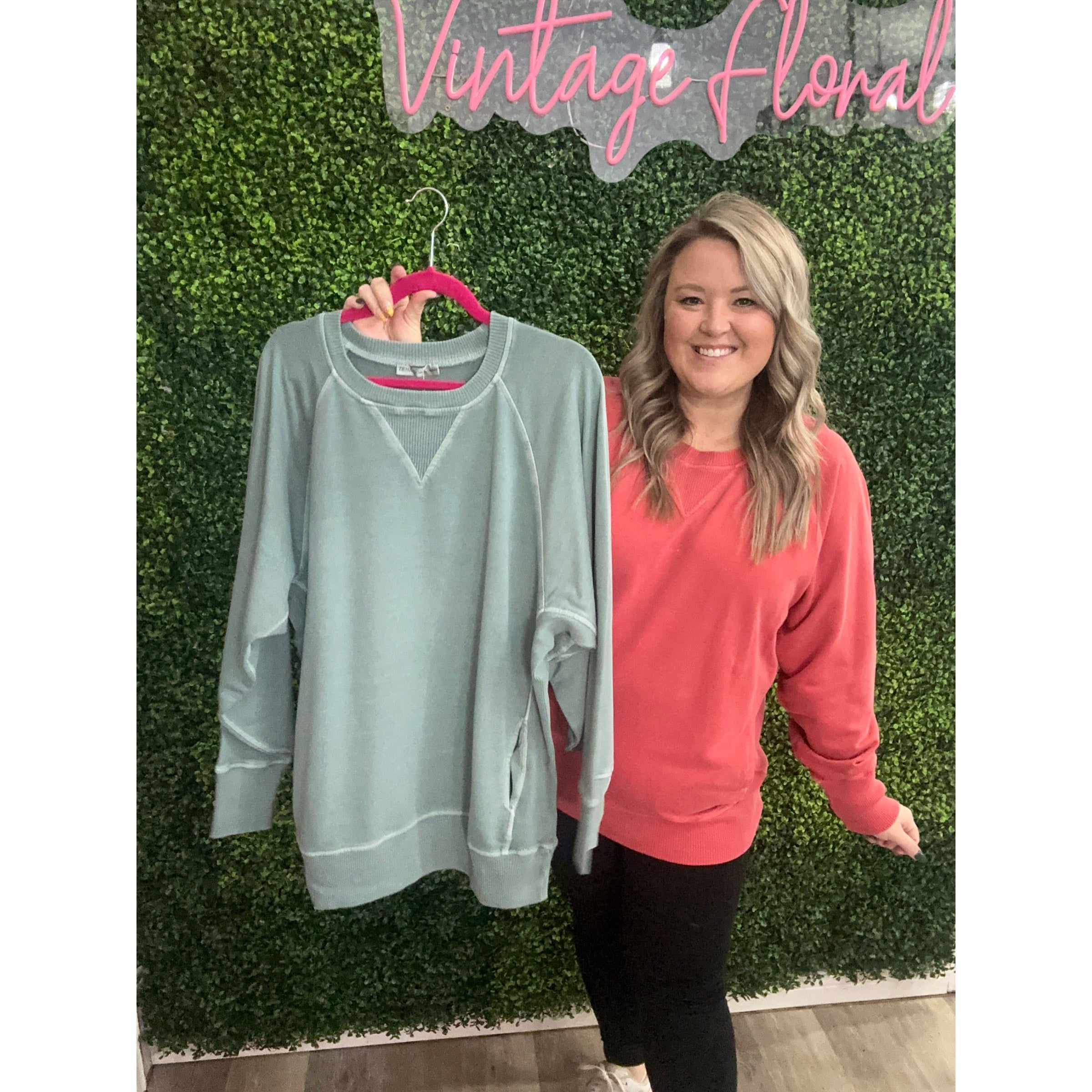 PLUS PIGMENT DYED FRENCH TERRY PULLOVER WITH POCKETS