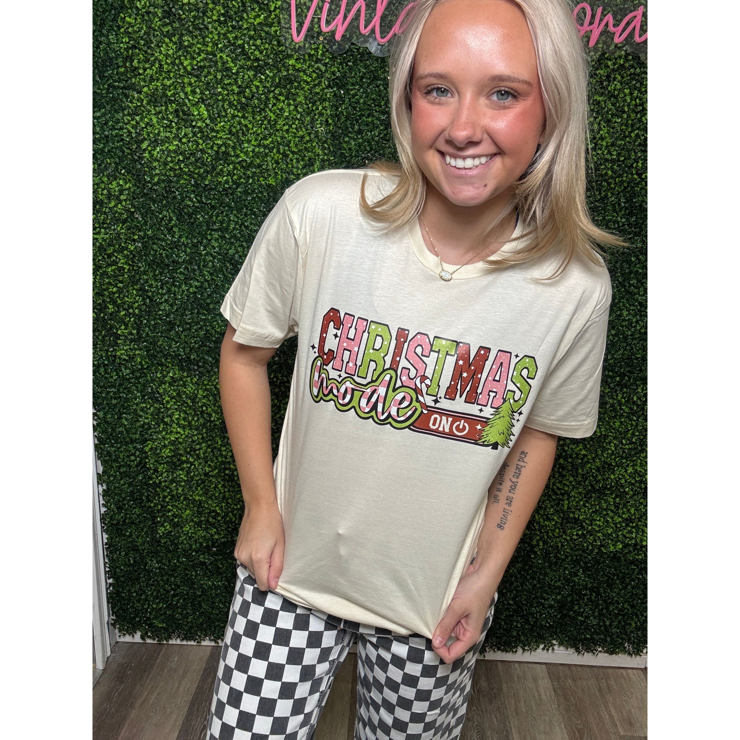 Get ready to sleigh the holiday season with this festive Christmas Mode + Graphic Tee! Featuring a range of playful and quirky Christmas bow designs, this t-shirt is the perfect addition to your holiday wardrobe. Spread some cheer and show off your fun side with this unique and stylish tee.