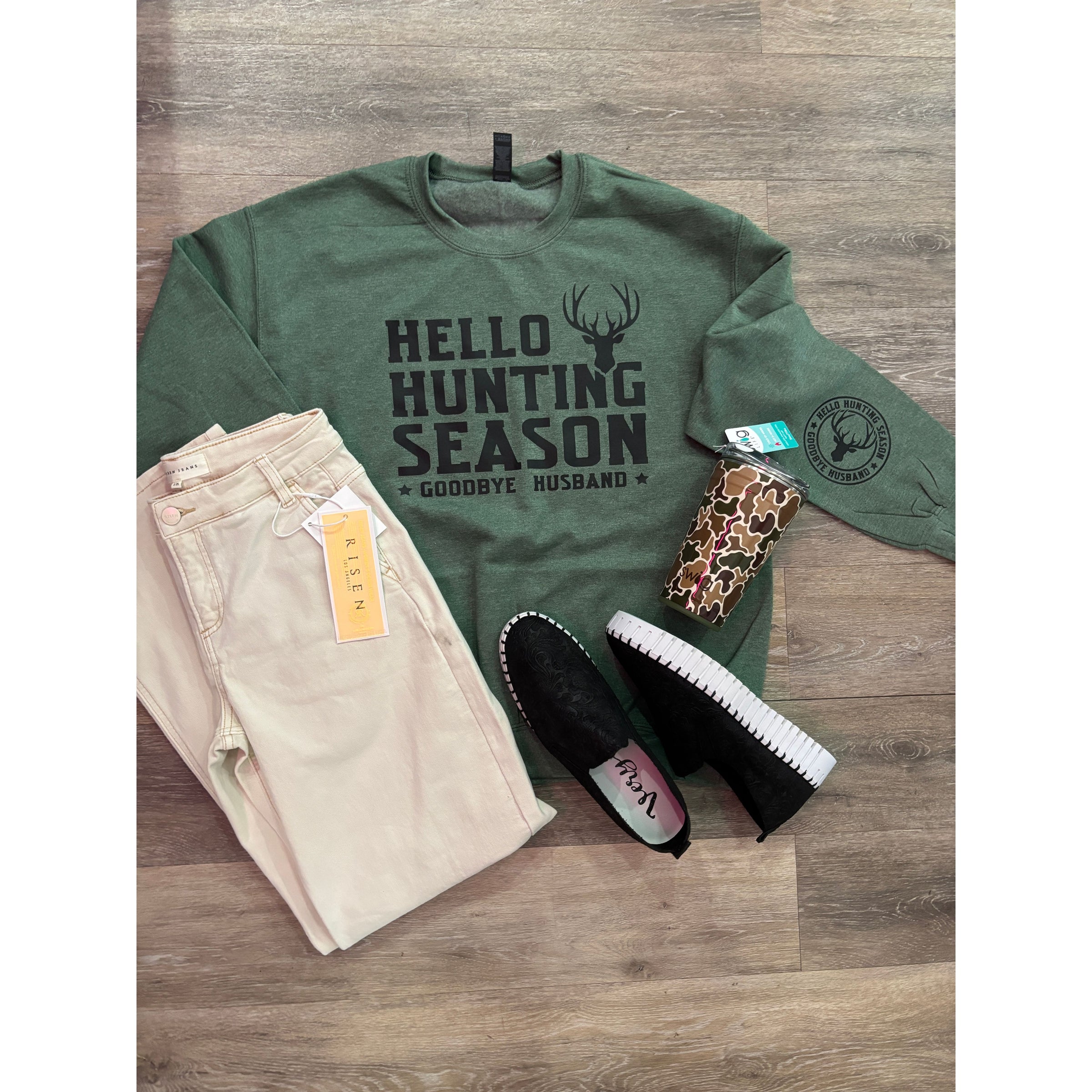 Soft, cozy, and perfectly true — this sweatshirt says it all. Hello hunting season, goodbye husband! The must-have pullover for every hunting widow who’s holding down the fort (and looking cute doing it)