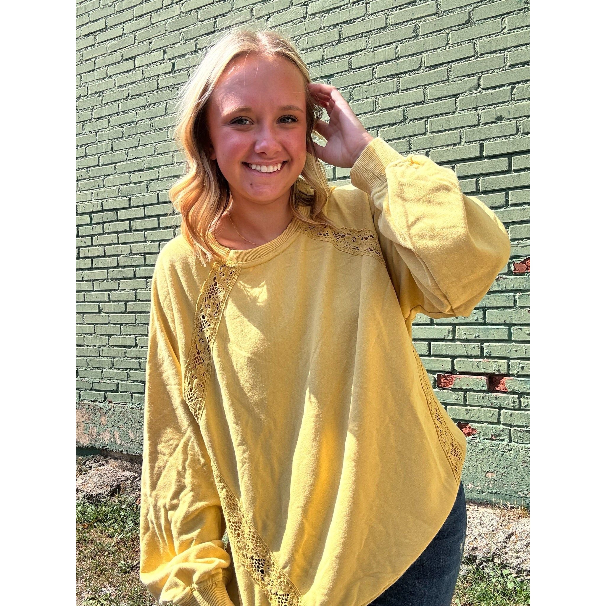 Lace Trim Yellow + Long Sleeve Top