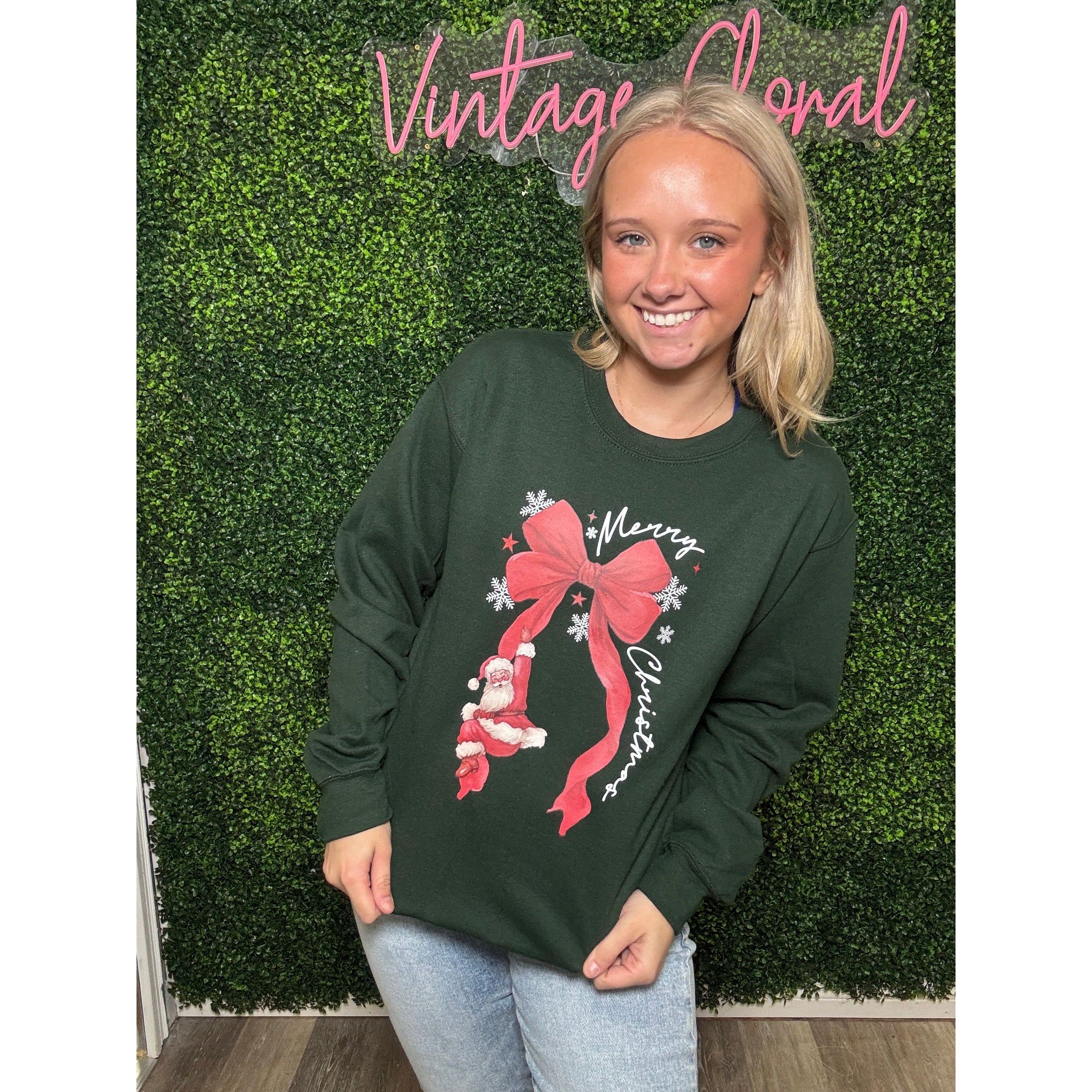 Merry Christmas Santa Bow Sweatshirt