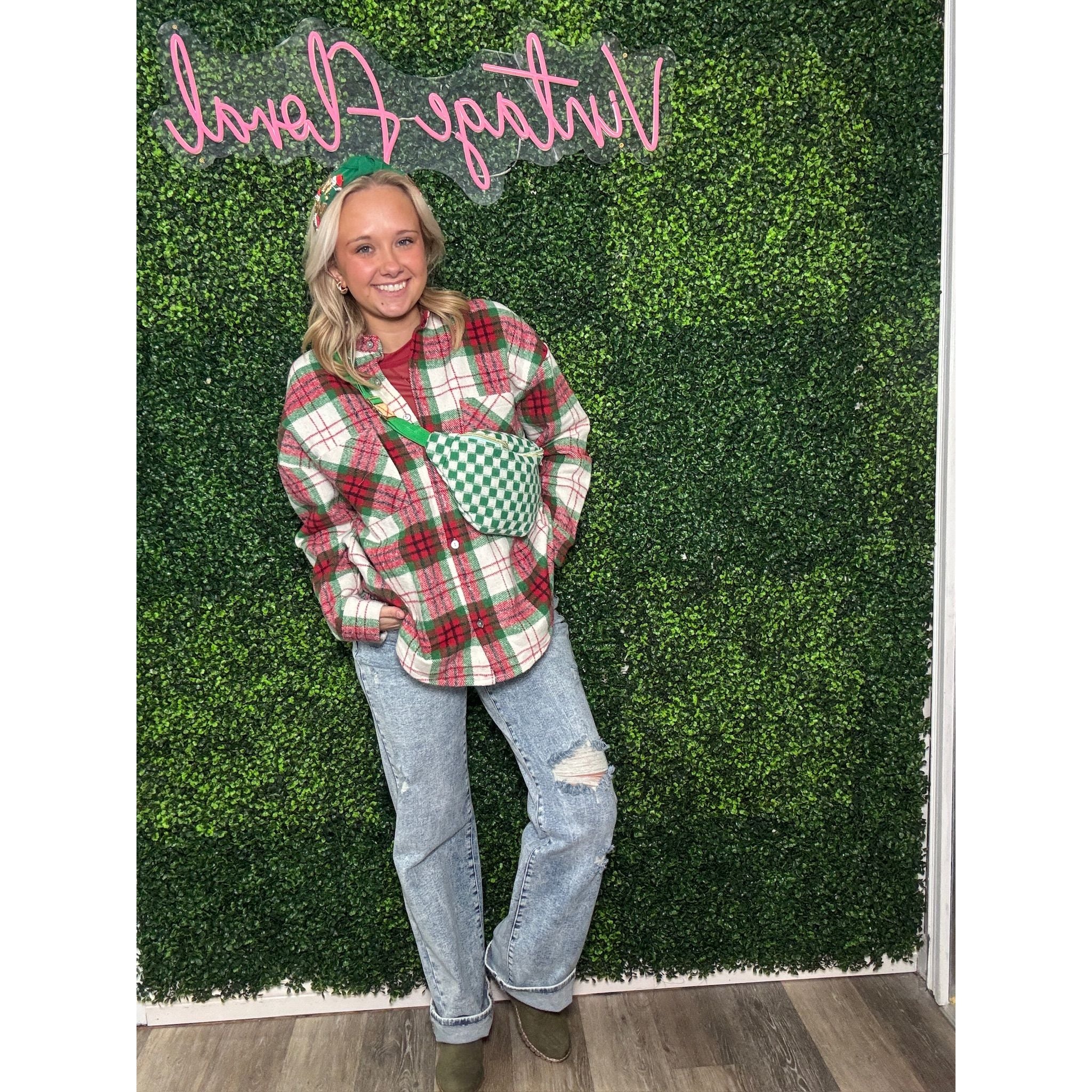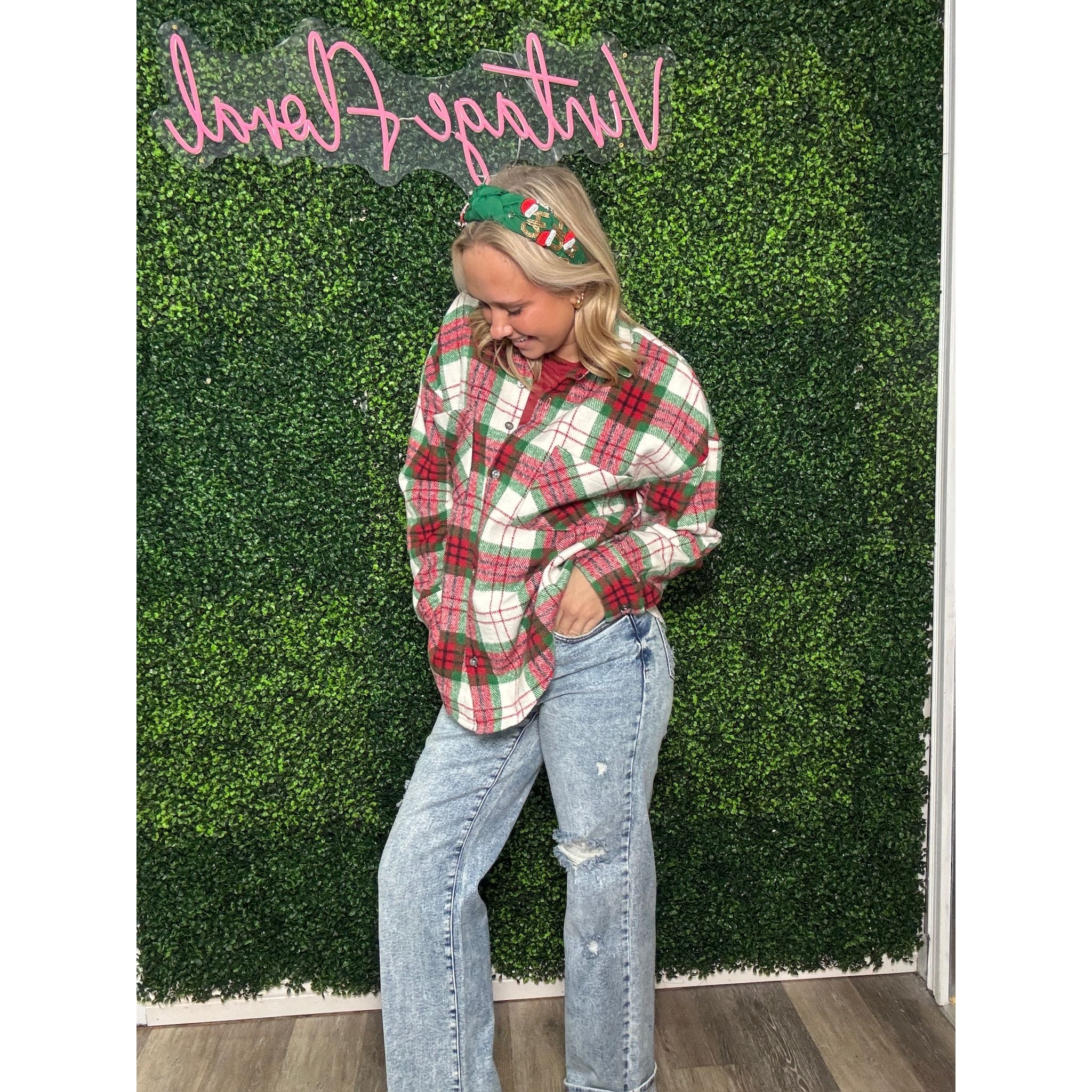 Wrap yourself in holiday cheer with the OH Christmas Tree + Flannel! This soft, cozy flannel features classic Christmas colors, making it the perfect festive layer. Pair it with a fun graphic tee for a playful, comfy look that’s ready for any holiday gathering or cozy night in.