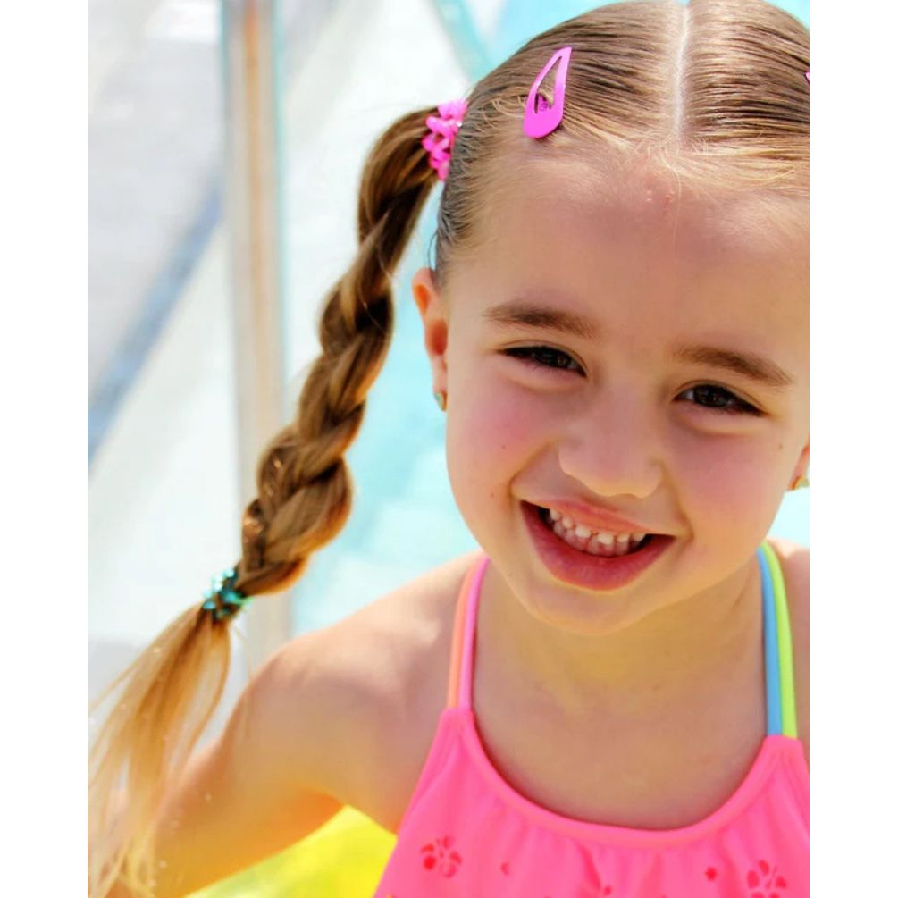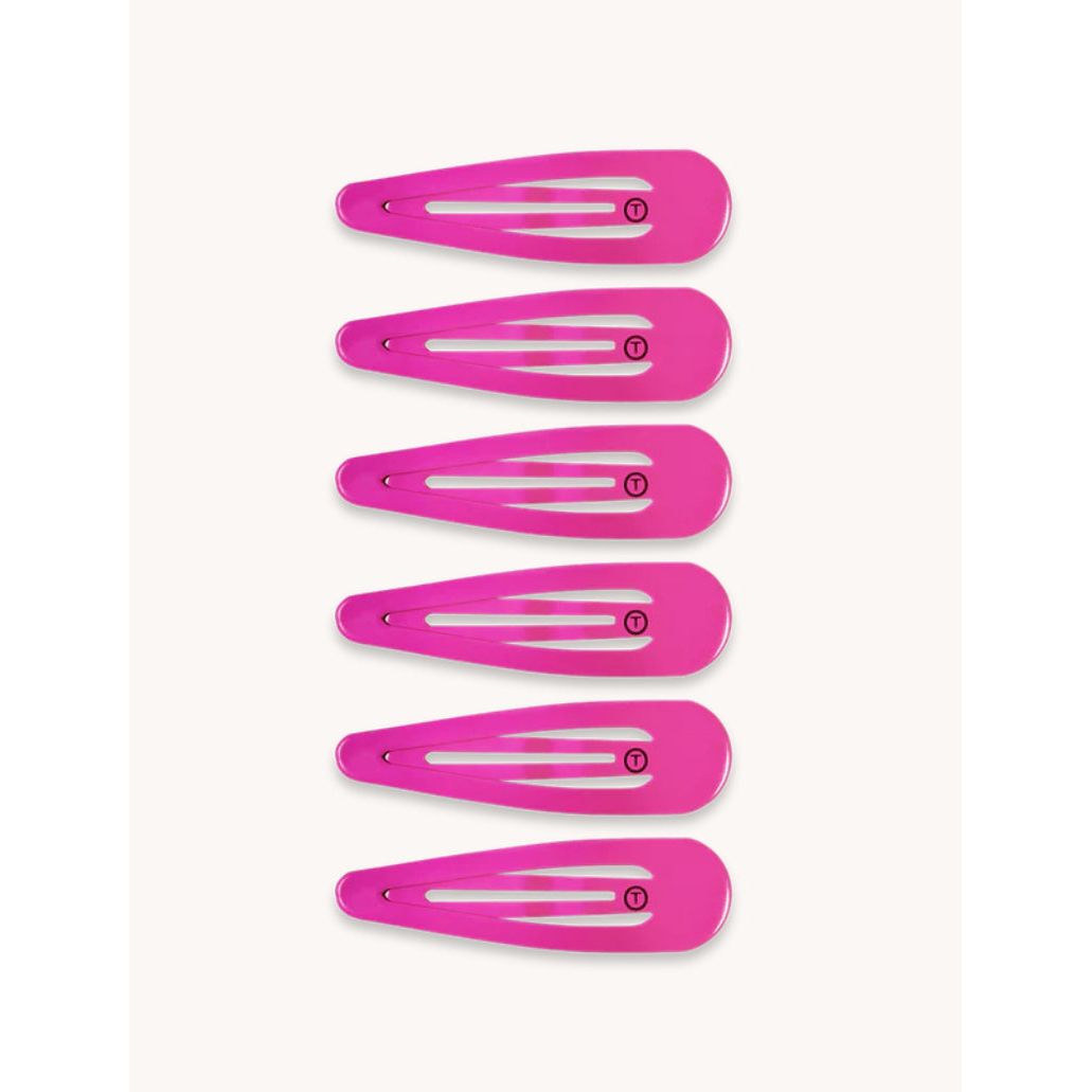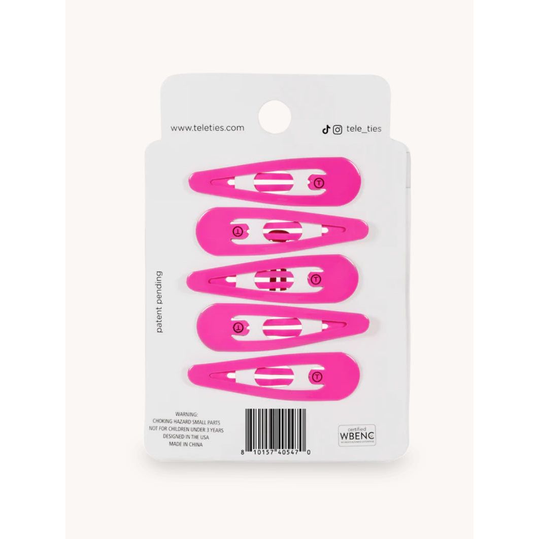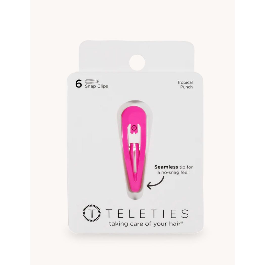 TELETIES Tropical Punch Snap Clips in Pink offer a secure seamless tip for a no snag feel. Perfect for all hair types, these stylish barrettes provide a gentle yet firm hold, whether you're styling or simply pulling back strands. Available in a range of colors, TELETIES Snap Clips combine functionality with flair, ensuring your hair stays put all day long.