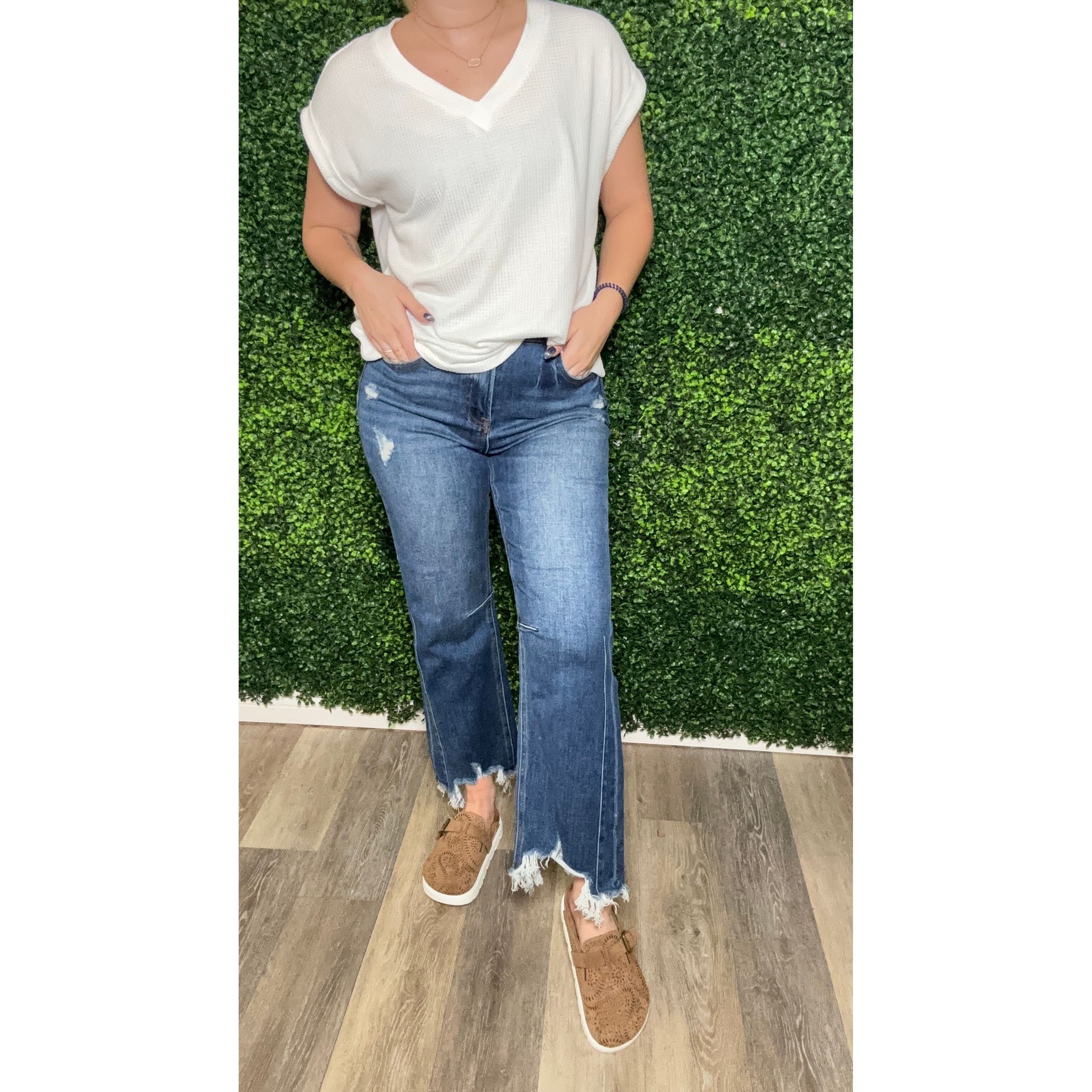 Meet the jean that's taking over your feed—the Risen Viral High-Rise Cropped Straight. This trendsetting style features a flattering high-rise cut that elongates your silhouette, paired with a cropped length that's perfect for showing off your favorite footwear. The distressed hem adds an effortlessly cool edge that feels both vintage-inspired and undeniably current. Whether you're dressing it up or keeping it casual, this viral favorite delivers the perfect blend of comfort and style that keeps people coming back for more.